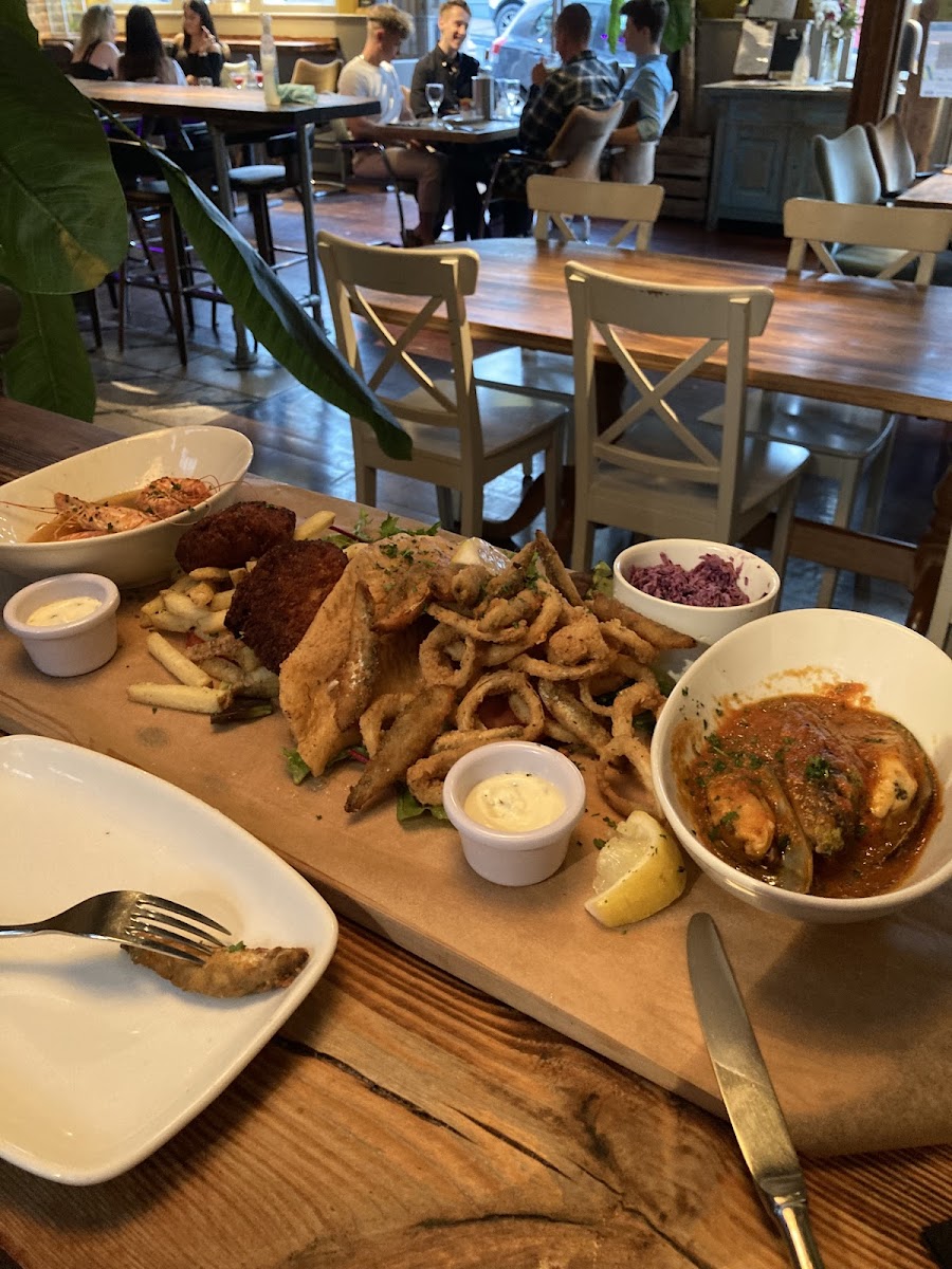 Gorgeous restaurant both in the way it's laid out and designed, and the food. I have nothing but good things to say. All of the staff were pleasant and welcoming. I went for the salt and pepper squid to start whilst my partner got salt and chilli chicken wings, we also got a bread board to share which came with garlic butter and olive oil and balsamic. For main, I went for the chicken escalope while my partner got the beef tagliatelle. The pasta is made fresh which you get to see if you're sitting close to the kitchen and bar! We did treat ourselves to dessert as well but I didn't catch a photo; I had affogato while my partner got their tiramisu. Again, not a single complaint, and we are planning our next visit so I can try their cocktails as well!